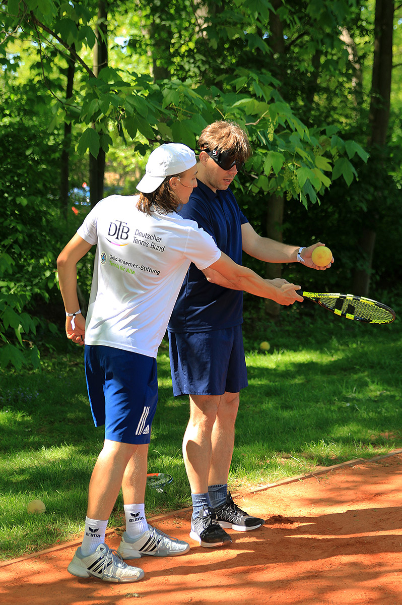 Blindentennis ist eine faszinierende dreidimensionale Sportart für Menschen mit Vollblindheit oder Sehbehinderung. In unterschiedlichen Startklassen, die sich nach dem Sehvermögen richten, wird mit rasselnden Bällen und fühlbaren Linien gespielt.